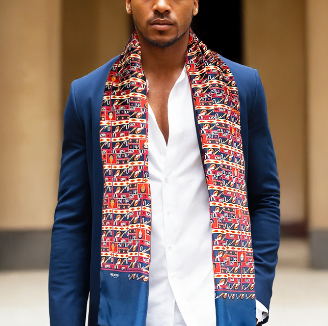 Inspired by ancient mural paintings and the Ge’ez script, this design is a tribute to the rich heritage of East African culture. The intricate motifs and alphabets tell a story of tradition, wisdom, and artistic excellence, bringing history to life in a wearable masterpiece.